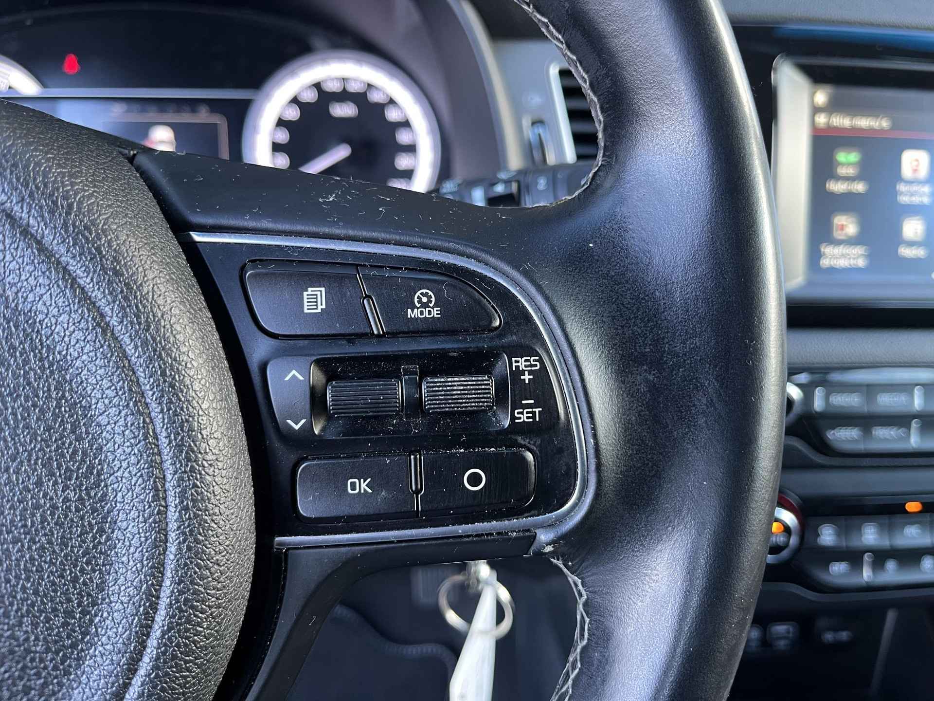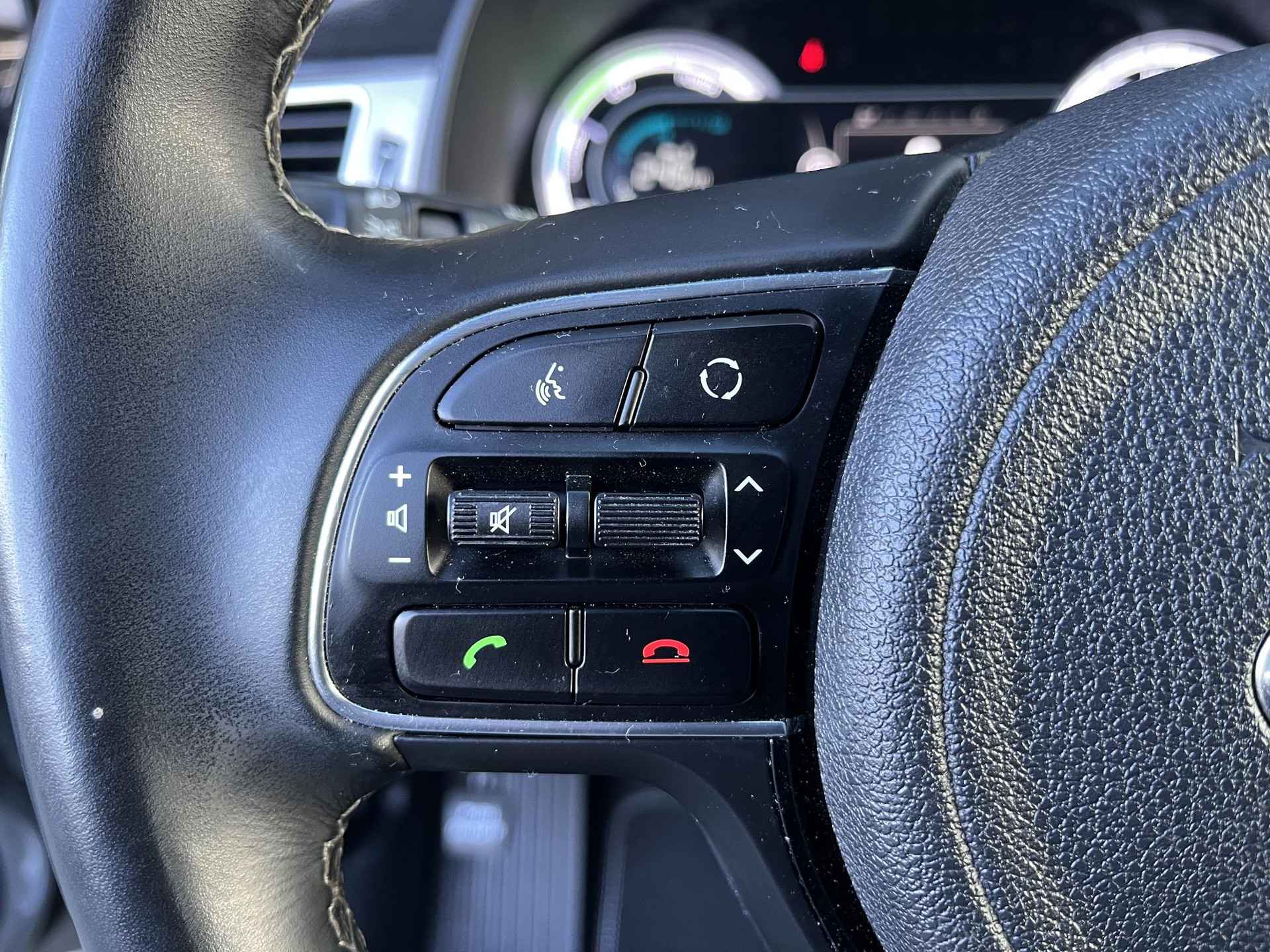 Zelfs een kleine aanrijding kan flinke kosten veroorzaken. Gelukkig laat de achteruitrijcamera precies zien wat er zich achter de auto bevindt en geeft een waarschuwingssignaal. Laat u onderweg niet afleiden, de bediening van het audiosysteem en ook het full map navigatiesysteem gaat met knoppen op het stuur. Natuurlijk is de audio-installatie voorzien van DAB-ontvangst. De electronic climate control zorgt voor een behaaglijk klimaat in de auto. Natuurlijk is een complete auto als deze ook voorzien van sensoren die de omgeving in de gaten houden. Deze Kia heeft niet alleen een automatisch inschakelbare verlichting aan boord, maar ook een regensensor. Met cruise control rijdt u rustiger en meer ontspannen, en bovendien zuiniger. De uitrusting van deze auto is met automatisch dimmende binnenspiegel, lederen stuur en versnellingspook en centrale deurvergrendeling met afstandsbediening behoorlijk compleet.