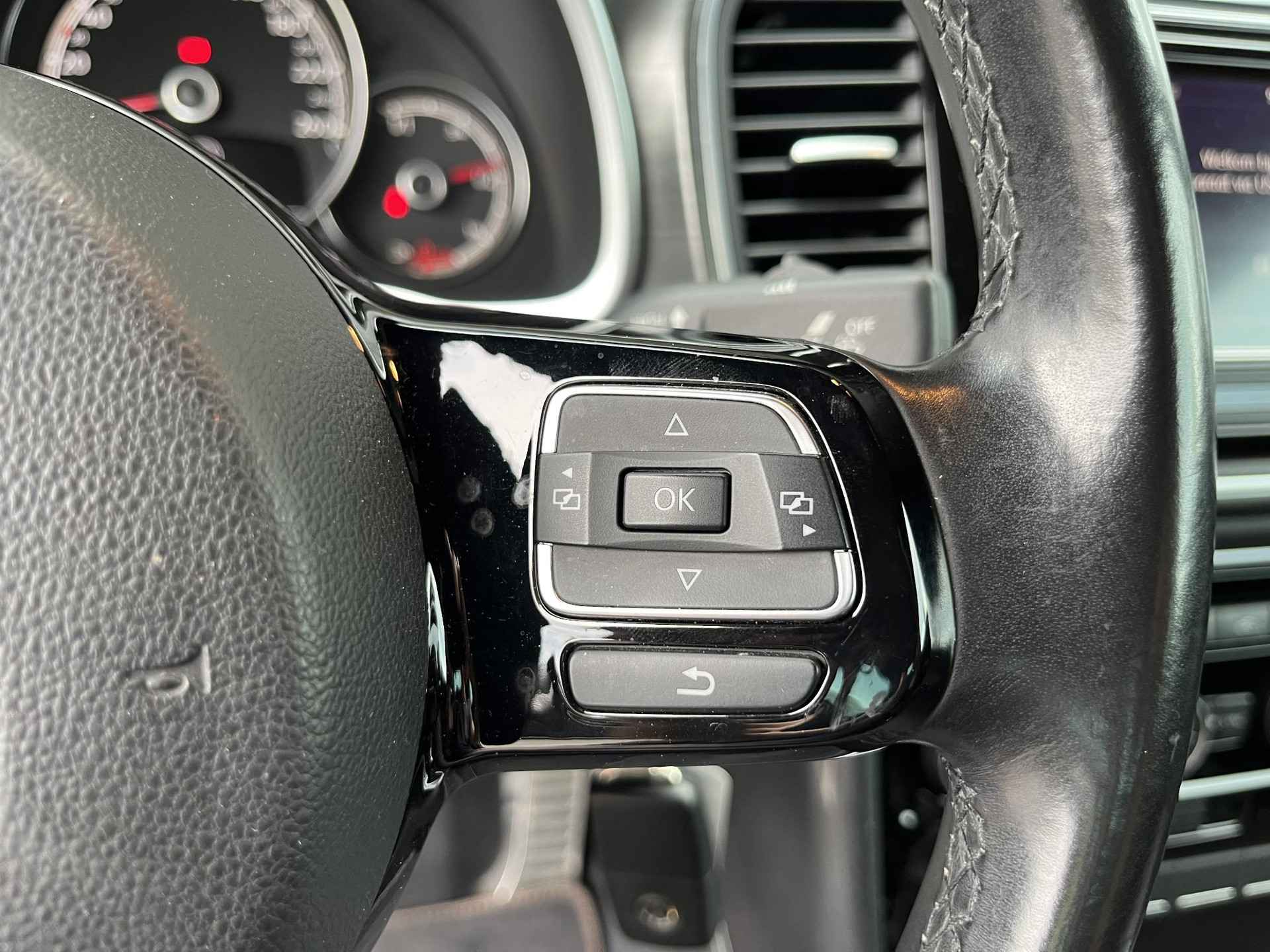 Deze auto kent elke bestemming als z'n broekzak, dankzij het navigatiesysteem. De electronic climate control zorgt onder alle omstandigheden voor een prettige temperatuur. Het audiosysteem bedient u blind met behulp van de audiobesturing op het stuur. Veilig en praktisch! U kunt bij het inparkeren natuurlijk niet aan alle kanten ogen hebben. Daarom is deze Volkswagen Beetle voorzien van parkeersensoren! Zuinig zoeven, dat kan deze auto dankzij de aanwezige cruise control. U bent in deze Volkswagen ook voorzien van lederen stuur, centrale deurvergrendeling met afstandsbediening en boordcomputer.